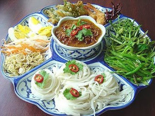 - ผัก เช่น หัวปลีหั่นฝอย, มะระต้ม, ผักบุ้งหั่นฝอยลวก